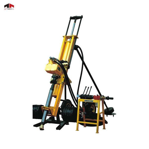 The rock blasting drilling rig DM100A/B is high powered with easy operation system. The pneumatic drill could be applied in open mine, water and electricity projects, railway and highway construction project. Within rock hardness range f=8-16,the quarry drilling machine can reach a higher drilling speed; the rubber hose braided with steel wire could bear high pressure; anchor holes could use on the two sides of slides by the M42X10X1.5 screw holes, which also could be used to fix optional (XQ) sled bearing drill holes 0 ° -90 °; or work with vertical shaft underground and Channel drilling 0°-360°borehole and ventilation, drain holes.The construction drilling equipment DM100A/B is really a gear helping hands for you to improve efficiency.